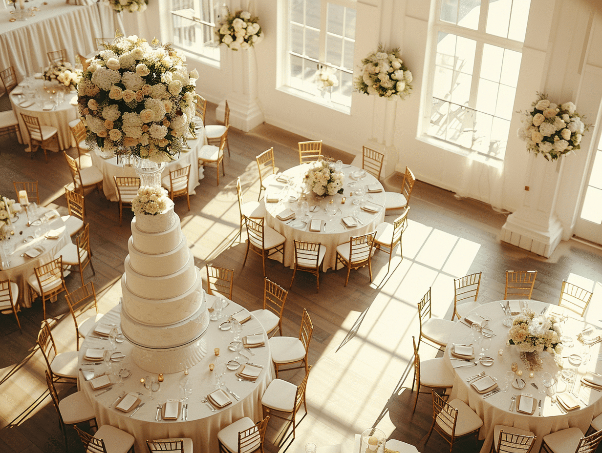 Le choix du lieu de réception et du traiteur constitue souvent la plus grande part du budget. Pour un mariage de 100 invités, le coût du traiteur seul peut atteindre 11 000 €, soit plus de la moitié du budget total moyen estimé.